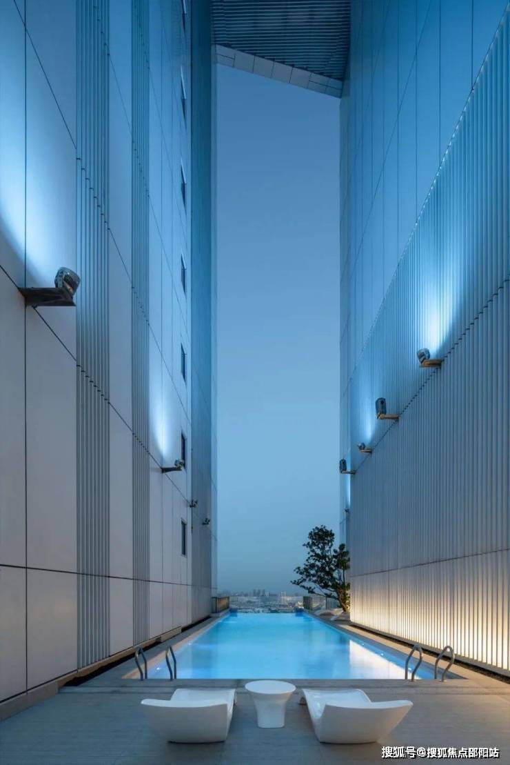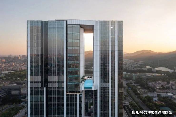 在项目的25层打造通高10层的中部透空空间,挺拔的竖向线条勾勒出“窗口”形象,空中平台与无边际泳池的结合,创造了独特的城市观景视角。考虑到使用者在环境中行为的偶发性,项目有意保持建筑的通透性和开放性,面向山景一侧设置平台层以提供非正式会面空间,另一侧的无边际泳池将建筑与城市景致无缝链接,以不同景窗的设计,实现移步换景、框景借景的视觉感观。