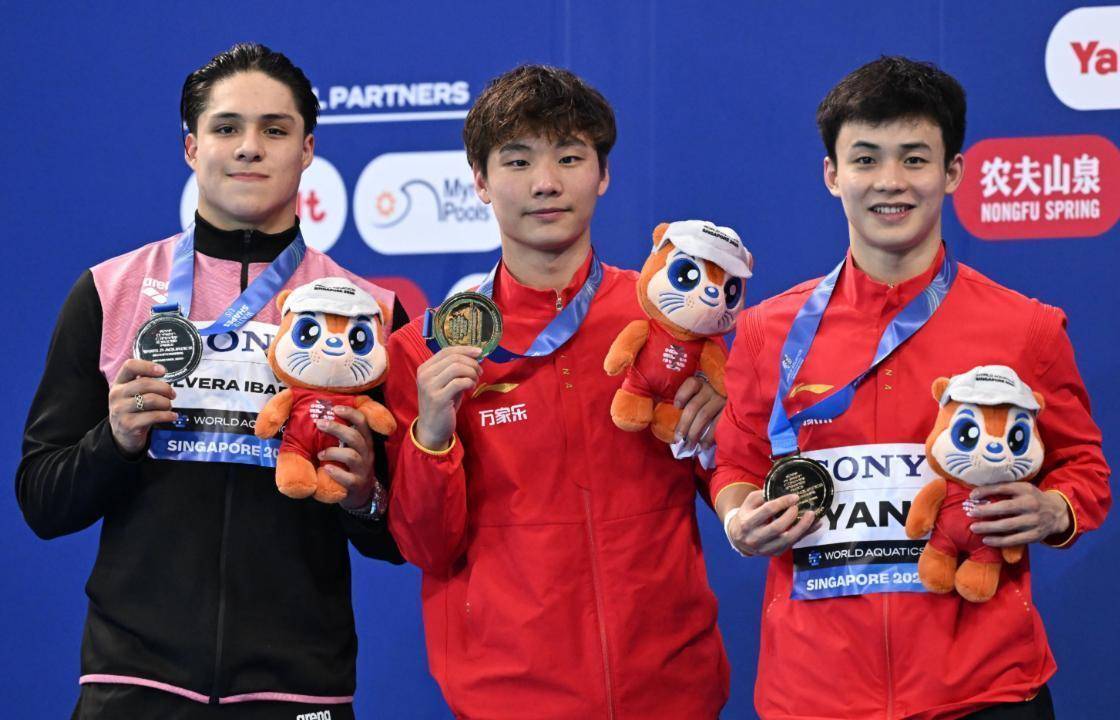 墨西哥人伊瓦拉在男子3米板的致命一击更具戏剧性。 第五跳,他祭出难度3.8的109C(向前翻腾四周半抱膝),102.60分的超高分瞬间反超比分。 30岁的曹缘拼尽全力,但5337D(难度3.3)的低配置动作让他以6.85分之差饮恨。 王宗源更显挣扎,伤病让他5156B(向前翻腾两周半转体三周屈体)仅得85分,铜牌已是极限。