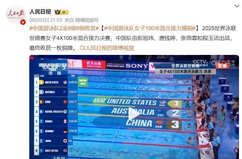 游泳接力的像复刻的噩梦。 混合4×100米自由泳预赛,杨雯文最后一棒突然“刹车”。 前三棒陈俊儿、王浩宇、余依婷总用时2分30秒稳居第三,杨雯文却游出54秒53,中国队从第三跌至第十出局。 教练组被痛批“世界大赛不是试验场”——同样阵容,去年多哈世锦赛他们是冠军。